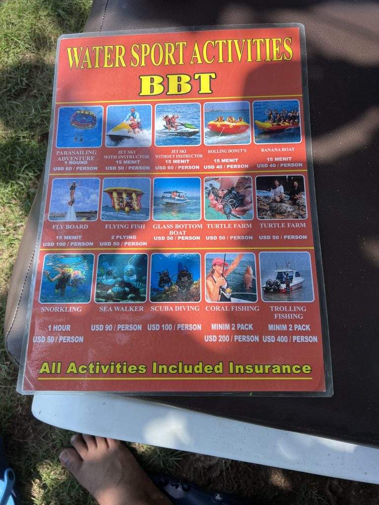 - Heavy scope of bargaining is there for the water sports. They initially gave us the figure, 5 times more than what we actually paid them.