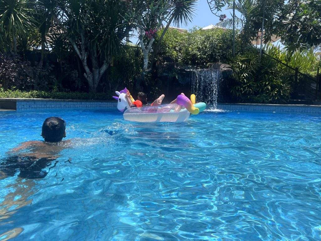 The day unfolded with water volleyball, where my husband and kids, along with other guests, enjoyed a spirited game. The enormous infinity pool, offering a breathtaking view of the sea, provided a serene escape. The tranquillity, enhanced by the absence of kids in this pool, created a peaceful retreat.
