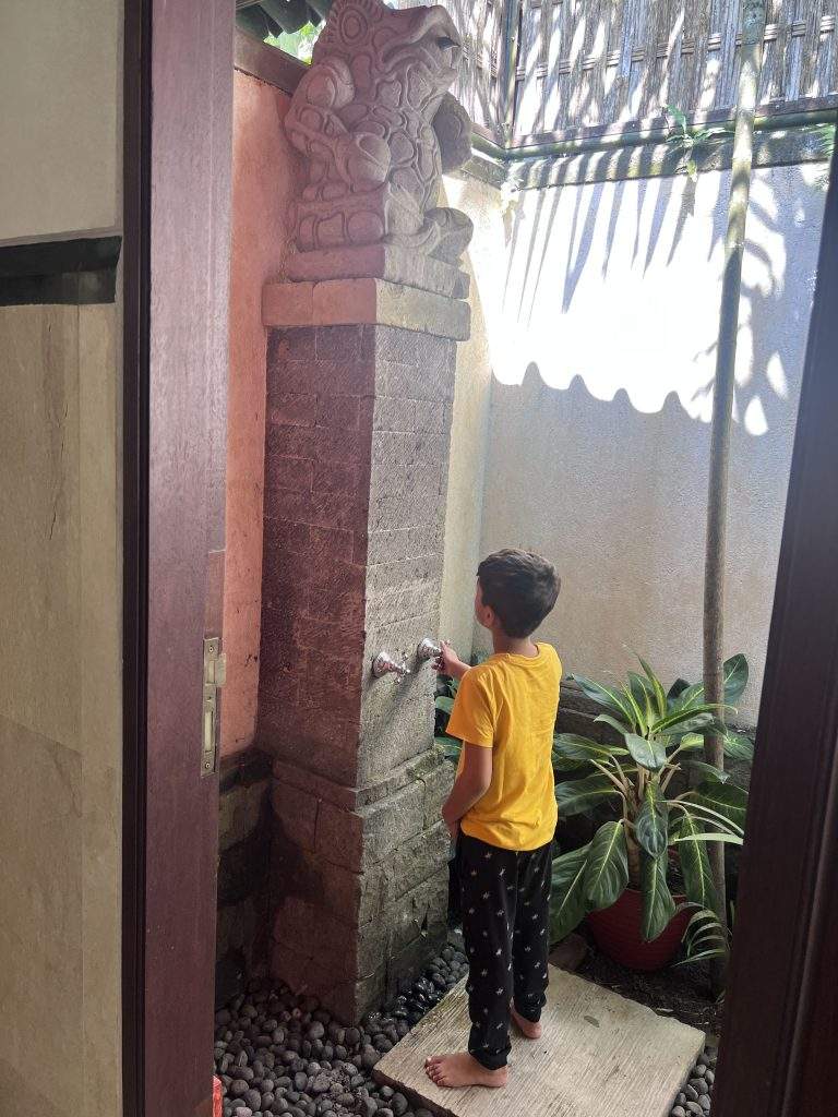 Later on, we did a special ritual called a holy bath. Wearing the Balinese sarong, we bathed in water that is considered sacred in Bali. It felt like, “Ganga me dubki lagana”.