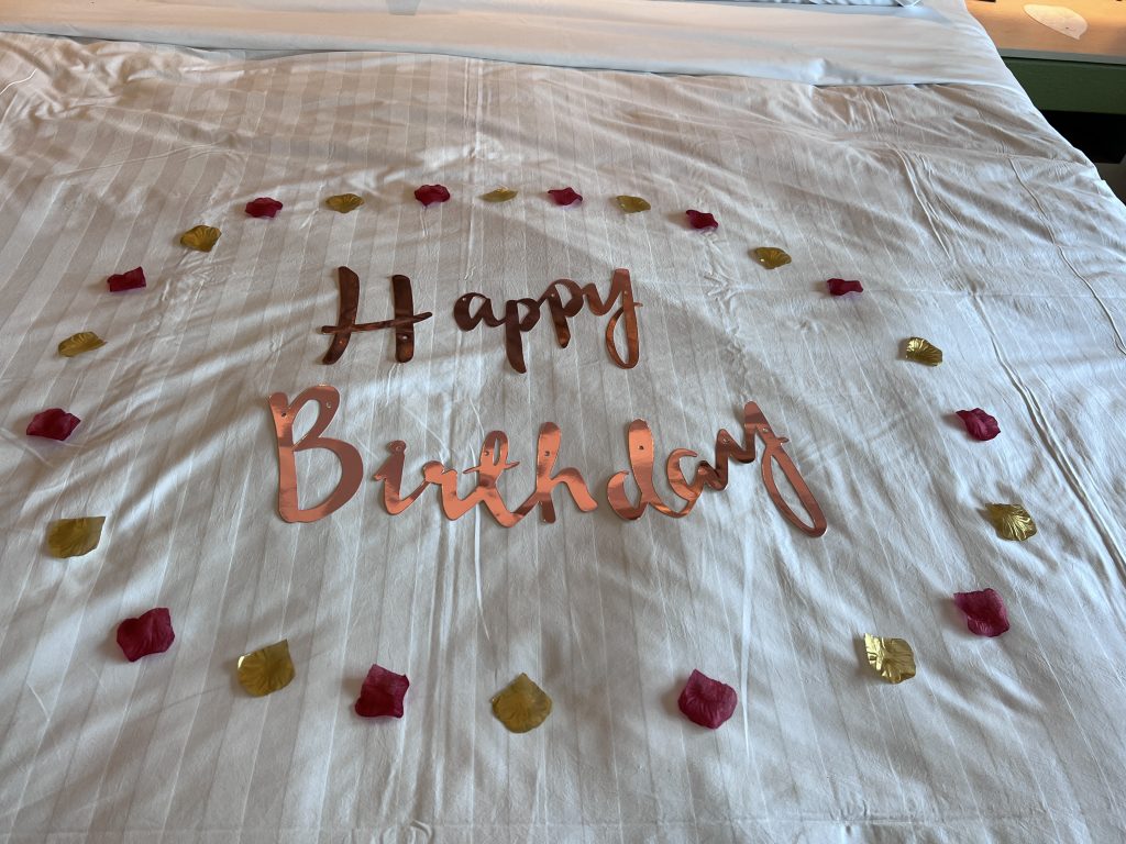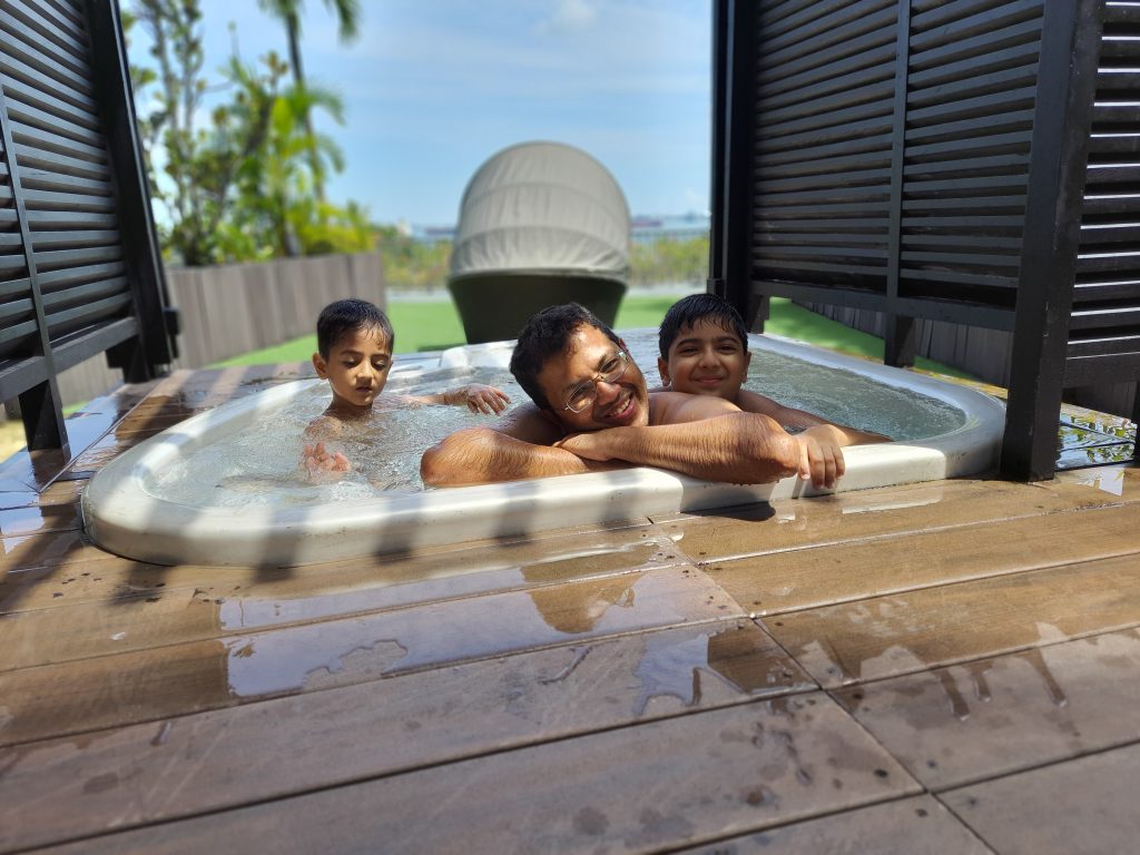 Special arrangements were done for the kids. Their special cute toiletries, kids’ activity sheets, cute little slippers, frog toys, etc. It was made more special for us, as we were celebrating our son’s 10th birthday. A complimentary cake for him and special birthday decoration was made in the room. He was so happy and surprised to see that when he entered the room. Also, the sofa in the guest room was converted into a comfortable double bed at night for the kids. That way we got our privacy in our own bedroom, with kids sleeping safely right in front of us in the other room.