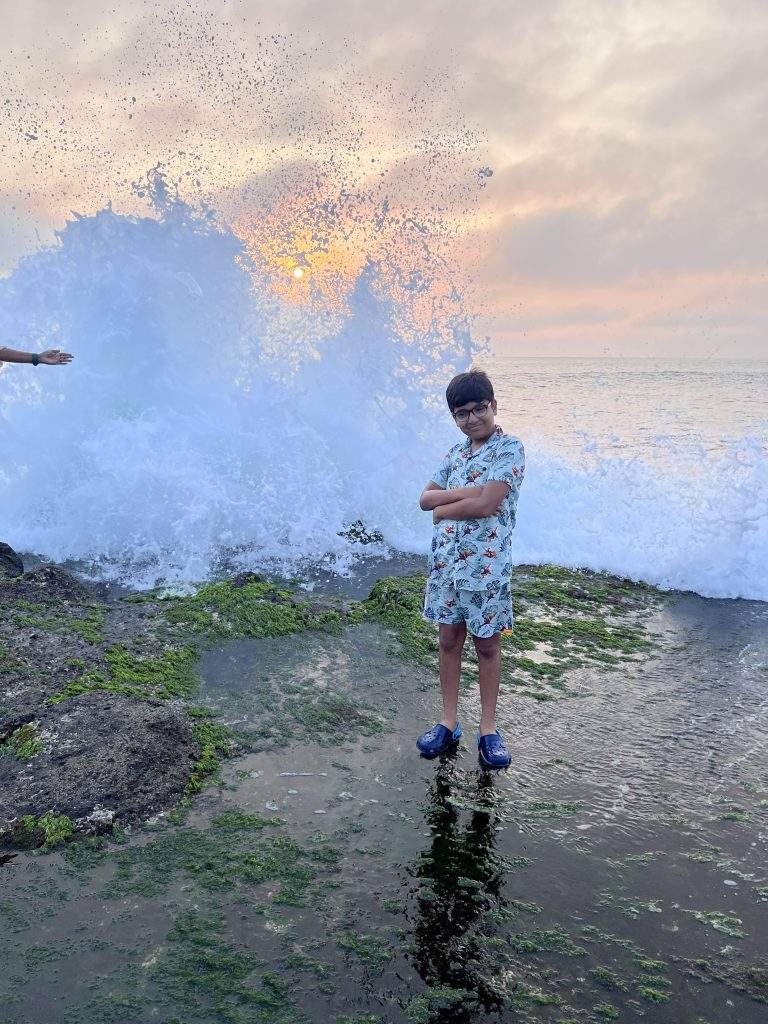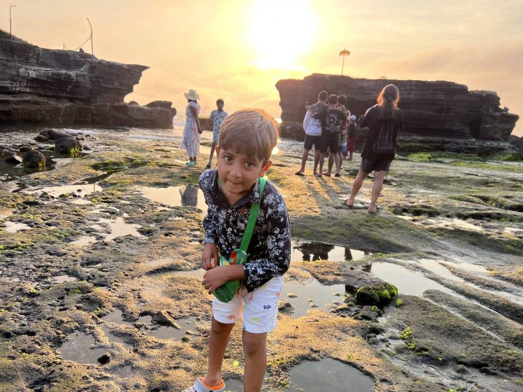 The journey to Tanah Lot temple held the promise of a breathtaking sunset, and the destination did not disappoint. The scene became a photographer’s dream as the sun descended, casting a warm glow over the temple and the crashing waves. Kids’ joy also knew no bounds, when they got all wet in the splashing water waves. Despite the crowd, a sense of calm and peace enveloped the area, making it a memorable Bali moment.