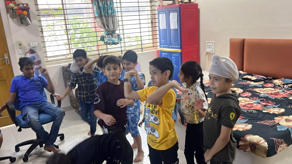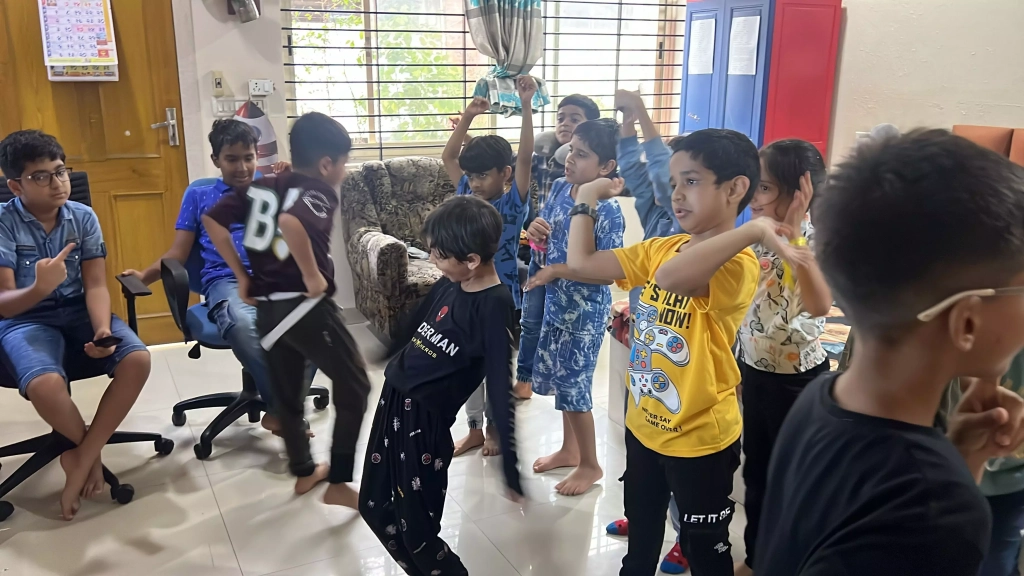 While we set up the meal table, Shantanu entertained the kids with “The Floor is Lava” and the famous Mario game on YouTube, keeping them perfectly occupied.