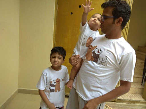 On 18 July 2018, my son Ishaan turned 6 years old. He loves the “We Bare Bears” cartoon, so I organised a themed birthday party for him based on this cartoon. Birthday boy, his dad and his younger brother looked so cool in the customised T-shirts.