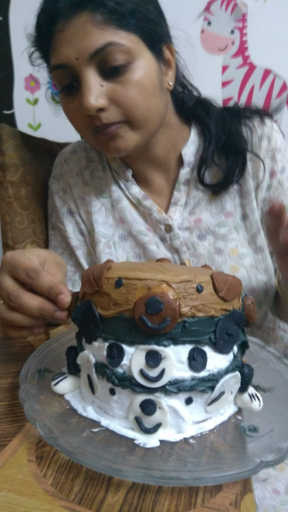 Though not beautiful and that clean like professionally made cakes, I made a tasty cake having all Three bears, Grizzly, Panda and Ice.