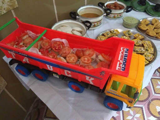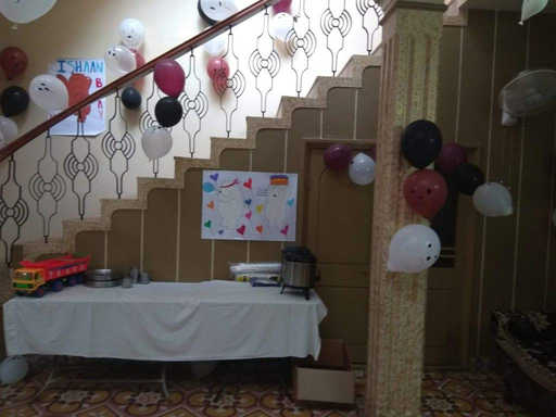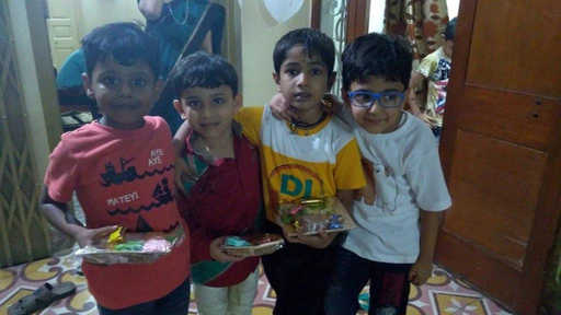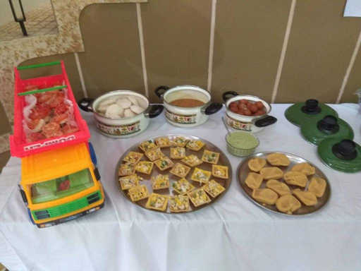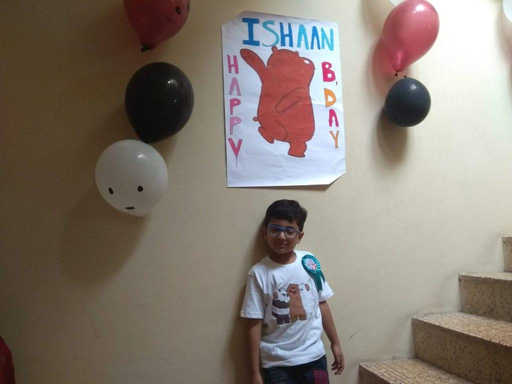 I made some posters for decoration. Ishaan’s cousin, Hiti also helped me in making these posters. I bought 3 coloured balloons, white(for ice bear), black(for panda) and brown(for Grizzly) and drew their face on the balloons using the marker pen. For food, we had mini burgers in the truck, corn tarts, idli sambhar, Gulab Jamun and peda.